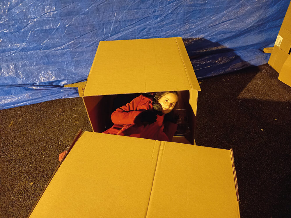 When the time came to go to sleep, I wrapped up in my sleeping bag and tried to stay warm. It was an unusual experience, lying in a cardboard box with nothing but the sleeping bag, a floormat and blanket for protection. Trying to get sleep in the cardboard box whilst out in the cold opened my eyes to what it really means to ‘sleep rough’ – exposed to the elements, feeling the biting cold and struggling to stay warm.