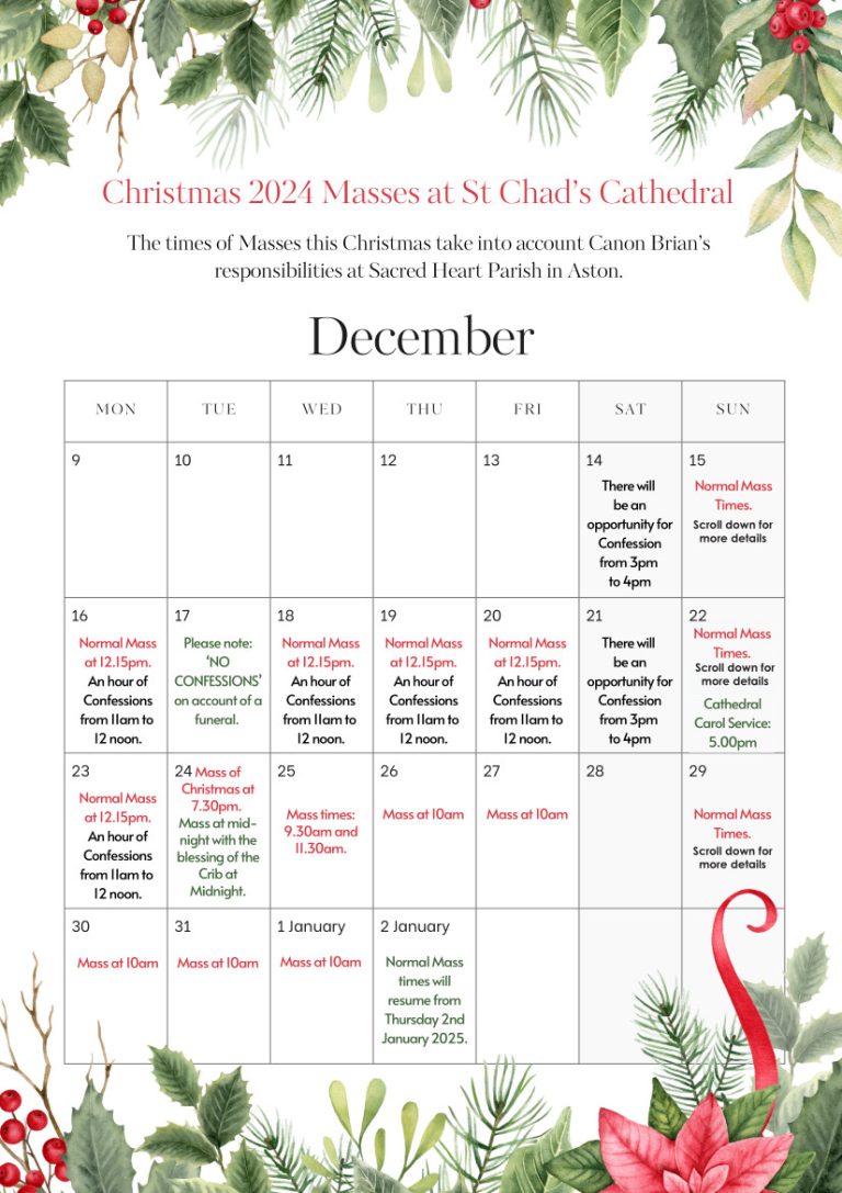 Find a listing of services at St Chad’s Cathedral, 3540 St Chads Queensway, Birmingham B4 6HJ, below. This is also available online HERE.