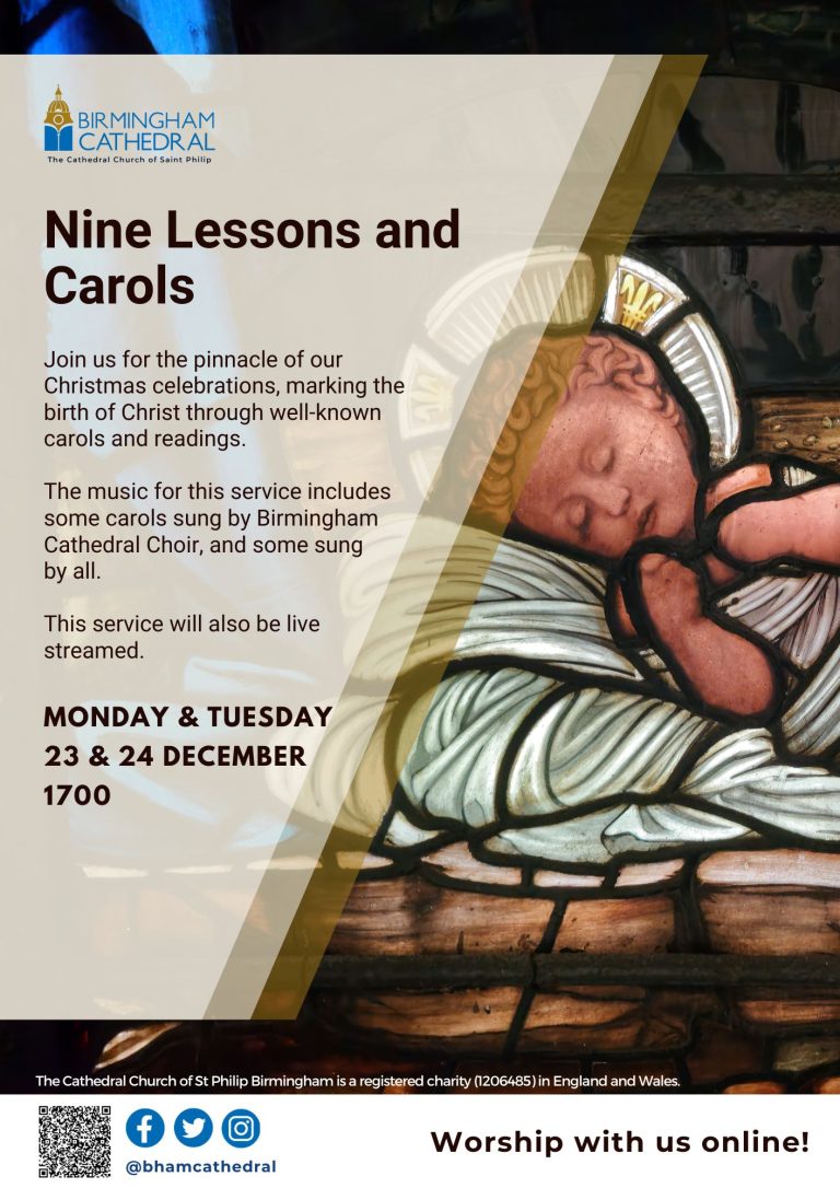 A full list of services at St Philip’s Cathedral, Colmore Row, Birmingham B3 2QB can be found HERE. The Midnight Mass begins at 11.00pm on Sunday 24 December in person at the Cathedral. It can also be viewed online via THIS LINK.