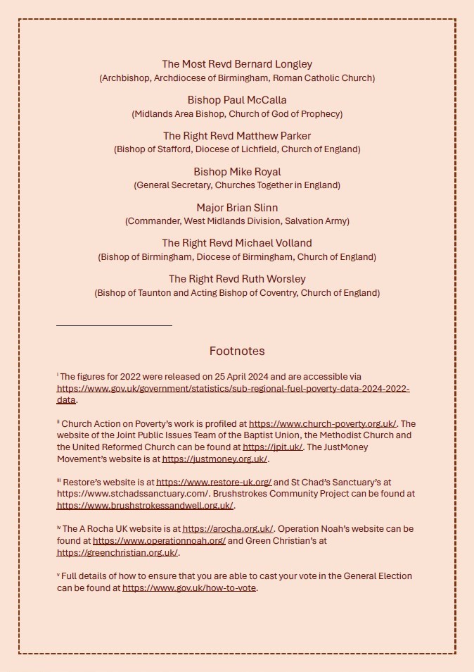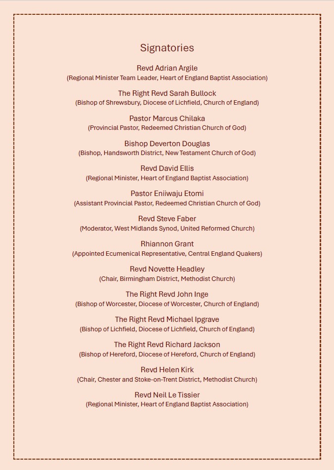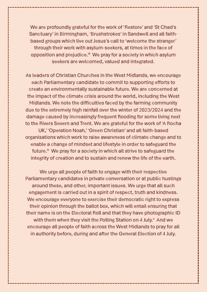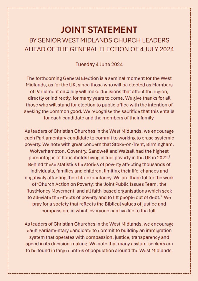 21 senior leaders of Churches based in and around the West Midlands have signed a joint statement ahead of the General Election of 4 July.