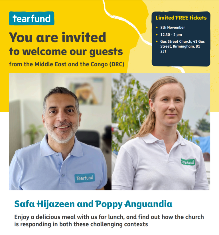 Tearfund invite you to join them in Birmingham to gain firsthand insights into the ongoing conflicts in the Middle East and the Democratic Republic of Congo and to learn about the church’s response to these challenging situations.