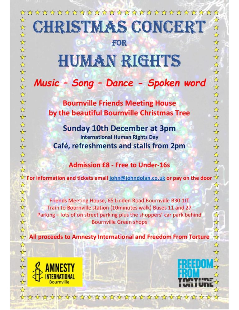 Christmas Concert for Human Rights + Add to Google Calendar + iCal / Outlook export Tags: Amnesty International Bournville, Birmingham Churches Together, Bournville, Christmas, Christmas Concert, Christmas Concert for Human Rights, churches together Date Dec 10 2023 Expired! Time 3:00 pm Category Social Justice Share this event