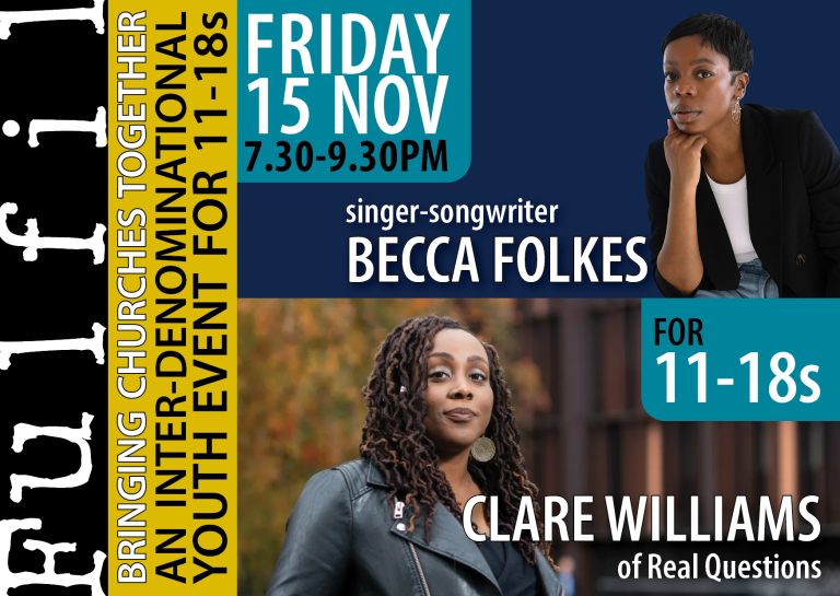 The next Fulfil youth event will be 15th November this year (with Becca Folkes & Clare Williams) at Mount Zion Community Church (see graphic attached). We encourage group leaders to book in advance via https://tinyurl.com/book-bcm-fulfil-event Â