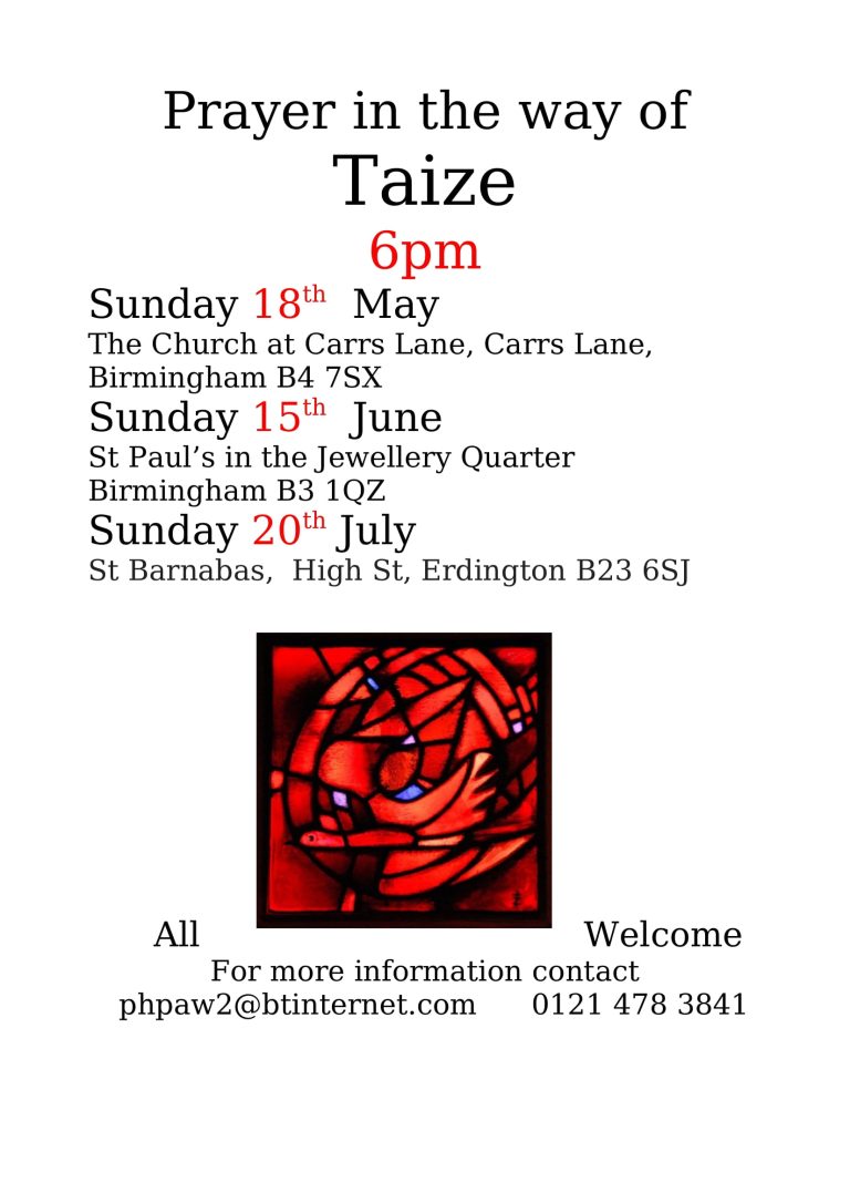 Prayer in the way of Taize + Add to Google Calendar + iCal / Outlook export Tags: Prayer in the way of Taize Date Jul 20 2025 Expired! Time 6:00 pm Category Prayer Share this event