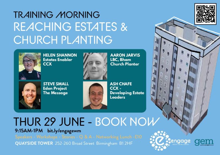 Reaching Estates and Church Planting + Add to Google Calendar + iCal / Outlook export Tags: Aaron Jarvis, Ash Chafe, birmingham, Birmingham Churches Together, church planting, churches together, Engage, Engage West Midlands, Evangelism, Helen Shannon, Mission, Steve Small Date Jun 29 2023 Expired! Time 9:15 am - 1:00 pm Category Mission & Evangelism Share this event