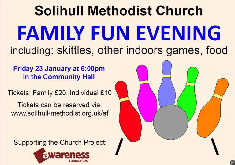 Solihull Methodist Church: Family Fun Evening + Add to Google Calendar + iCal / Outlook export 00 days 00 hours 00 minutes 00 seconds Tags: Awareness Foundation, Birmingham Churches Together, churches together, Churches Together in Solihull, Solihull Methodist Church Date Jan 23 2026 Time 6:00 pm - 8:00 pm Category Unity Share this event