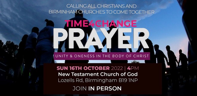 Time4Change Prayer + Add to Google Calendar + iCal / Outlook export Tags: BCT, birmingham, Birmingham Churches Together, churches together, Prayer Gathering, time4change Date Oct 16 2022 Expired! Time 4:00 pm Category Prayer Share this event
