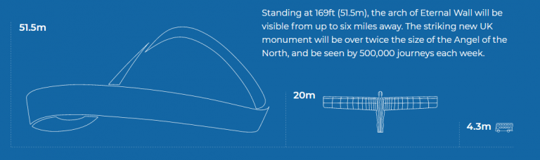 At 168 feet (51 metres) tall, the huge structure will be far larger than the iconic ‘Angel of North’ and the statue of ‘Christ the Redeemer’ in Rio de Janeiro. Situated where the M6 intersects with the M42, it will be seen by millions of passing motorists each year. The new HS2 rail line will run adjacent to the site. Aeroplanes preparing to land at Birmingham Airport will fly over the landmark.
