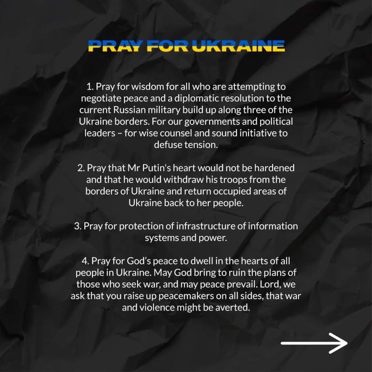 We pray for the people of the Ukraine and the people of Russia; for their countries and their leaders.