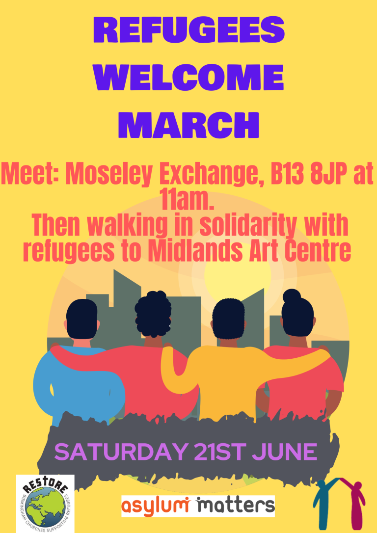The event has been organised by Asylum Matters, Birmingham City of Sanctuary Committee and Restore. The group will walk to Cannon Hill Park and the Midlands Arts Centre (MAC) where there will be a festival of refugee music from 12 noon to 6pm as part of Refugee Week.