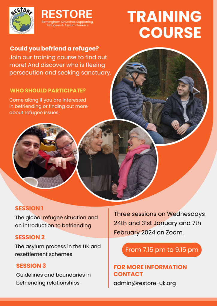 Would you like to offer welcome to refugees in 2024? We are always looking for new befriending volunteers. You can discover more at our next training course on Wednesdays 24 and 31 January and 7 February 2024. If you would like to donate to support our work and enable us to make a difference for more refugees, please click here.