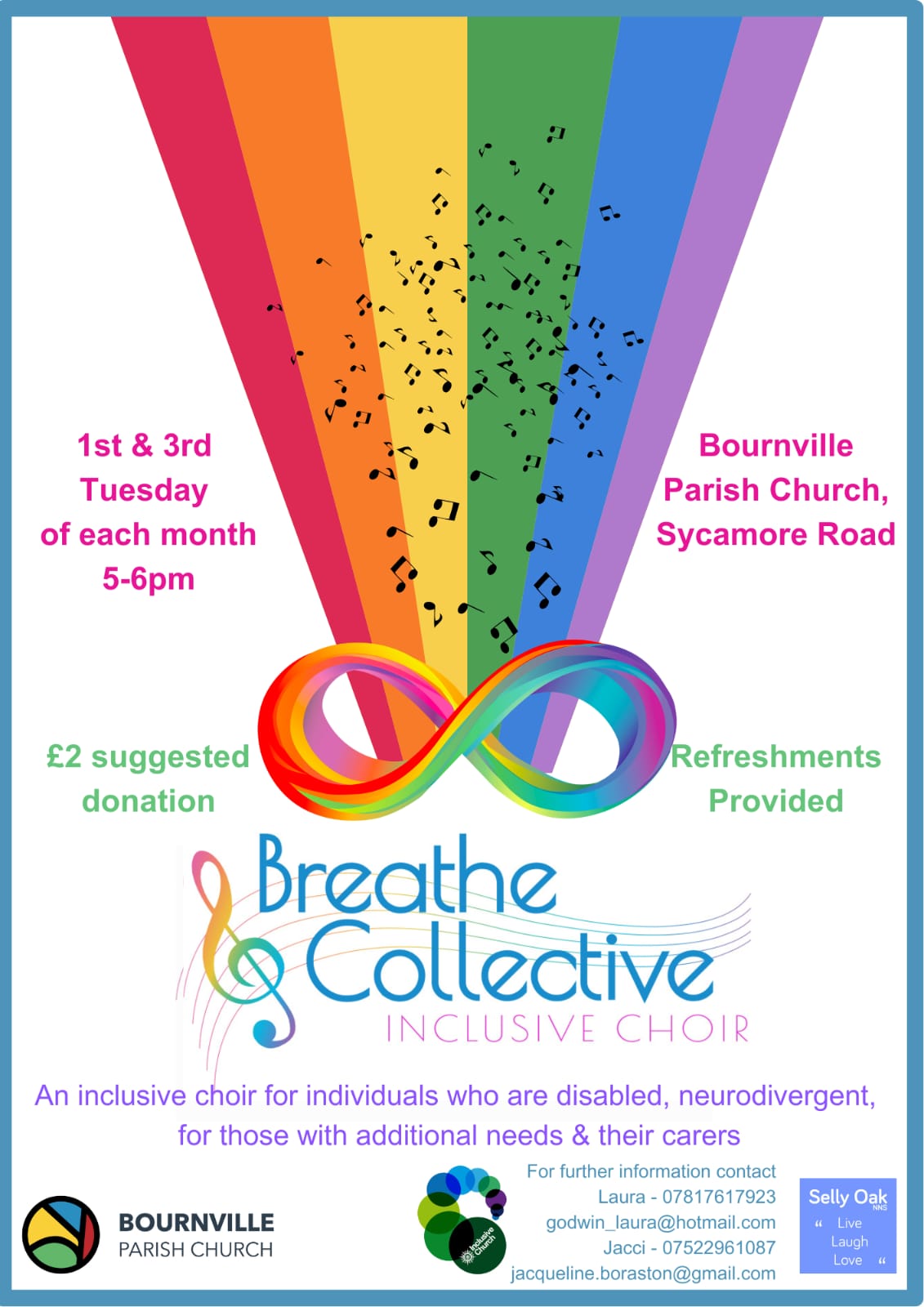 We are excited to be launching a new community choir at Bournville Parish Church.     ‘Breathe Collective’ will be an inclusive choir for individuals who are disabled, neurodiverse and for those with additional needs and their carers. This is an important part of our outreach offering space for all-inclusiveness and a respite for carers. … Read more