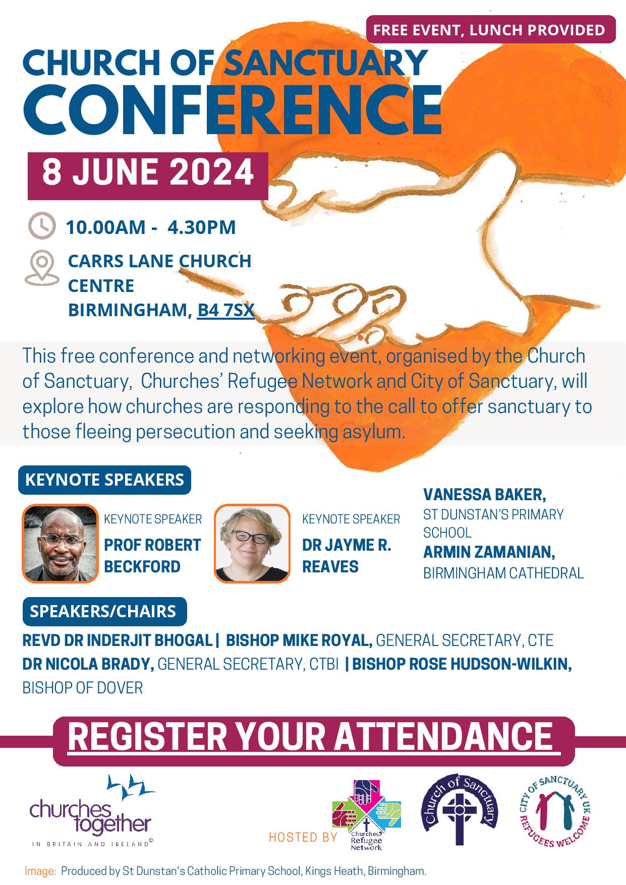 Churches Together in Britain and Ireland, City of Sanctuary and Churches Refugee Network invite you to attend and a Church of Sanctuary Conference in Birmingham on the 8th June at Carrs Lane Church Centre. Details are in the poster and the booking link is below. This event is free, and lunch is provided. Eventbrite … Read more