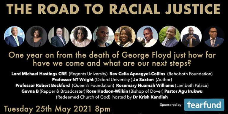 From 8.00pm on Tuesday, ‘The Road to Racial Justice’ will be online for 90 minutes, asking the question how far we have come during the year since George Floyd’s death and what are the next steps on the journey. Speakers include Revd Dr N T Wright (Oxford University), Professor Robert Beckford (Birmingham University), the Rt Revd Rose Hudson-Wilkin (Bishop of Dover) and Pastor Agu Irukwu (Redeemed Christian Church of God). The event is being hosted by Dr Krish Kandiah. More information and registration for this free, online event can be found HERE.