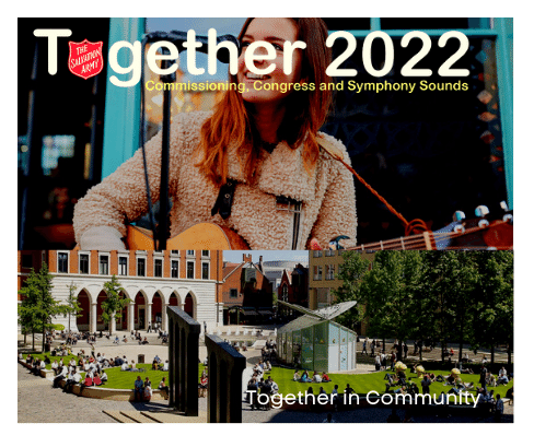 The festival weekend will begin with an hour-long prayer walk through the city centre, departing from the Birmingham Salvation Army Citadel at 5.00pm on Friday 15 July. This will be followed by a concert at the Rep Studio Theatre, featuring the Salvation Army’s International Staff Band, International Staff Songsters and guest soloist Charlie Green. Events on Saturday 16 July begin with a Parkrun at Edgbaston Reservoir at 9.00am and a Bible study at the Rep Theatre at 10.30am. Saturday afternoon events include workshops at the Rep Theatre; foyer concerts and seminars at the ICC; busking and sports in Brindley Place. Three short concerts will be held at the ICC from 6.00pm on Saturday evening. The commissioning of new Salvation Army officers will take place at the ICC at 10.30am on Sunday 17 July. The ‘Together 22’ weekend of events will conclude with a service focusing on mission and ministry, to be held at the ICC.