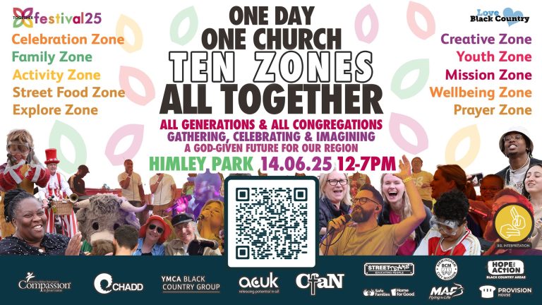 Our friends in the ‘Love Black Country’ network are staging the Together Festival 25 at Himley Park, Himley DY3 4DF, from 12.00pm to 7.00pm on Saturday 14 June . The aims of the multi-generational Christian festival are to gather Christians from the Black Country and surrounding areas, to celebrate what God is doing and to imagine the future together.