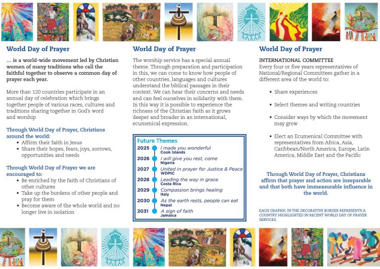 The 2024 World Day of Prayer will be held on Friday 1 March. A number of locations in Birmingham and Solihull will hold an ecumenical service on that day. Chosen by the Christian women of Palestine, the 2024 theme, ‘I beg you, bear with one another in love,’ is especially poignant.